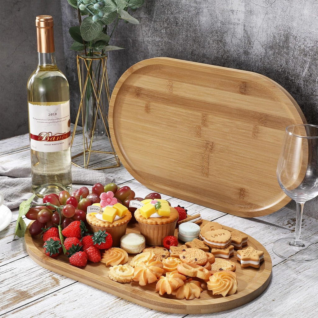 Conjunto com 4 Bandejas Ovais de Bambu – Rústicas para Chá, Café, Doces e Sobremesas