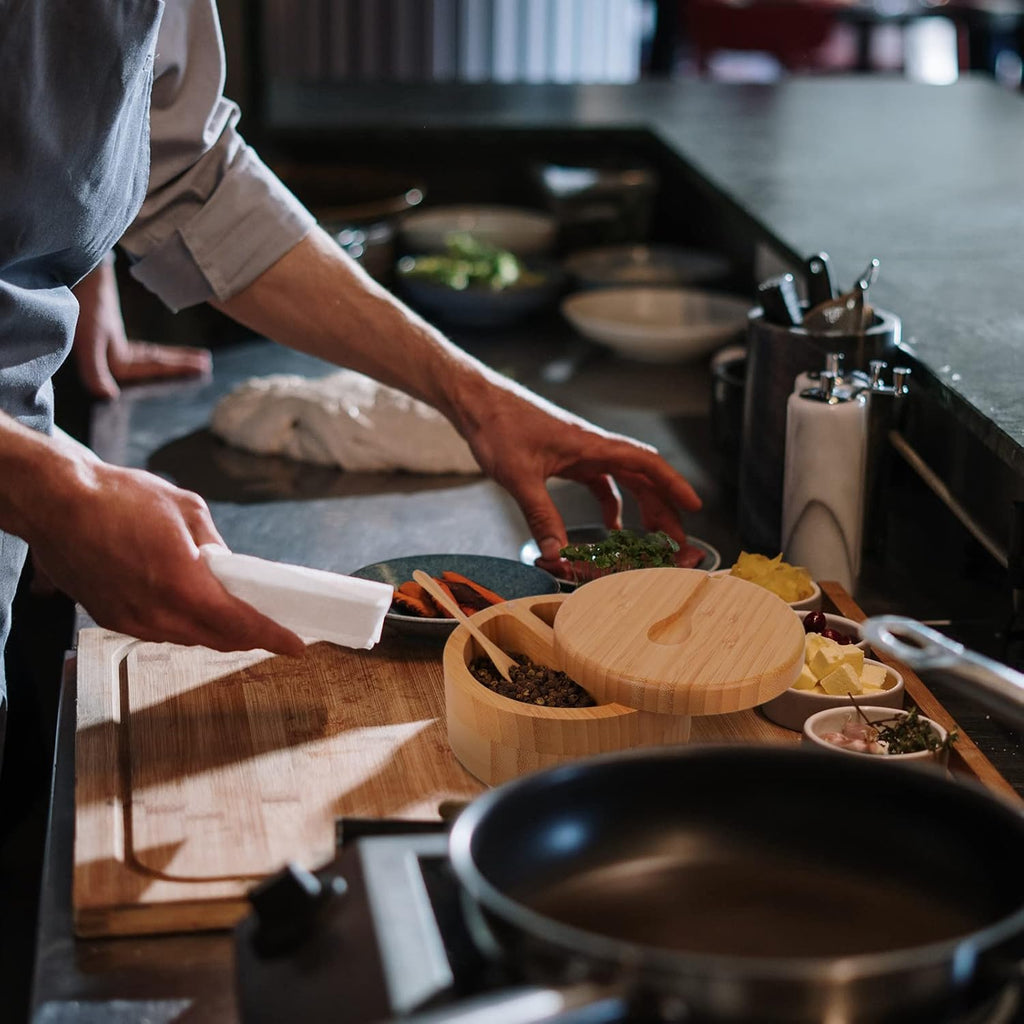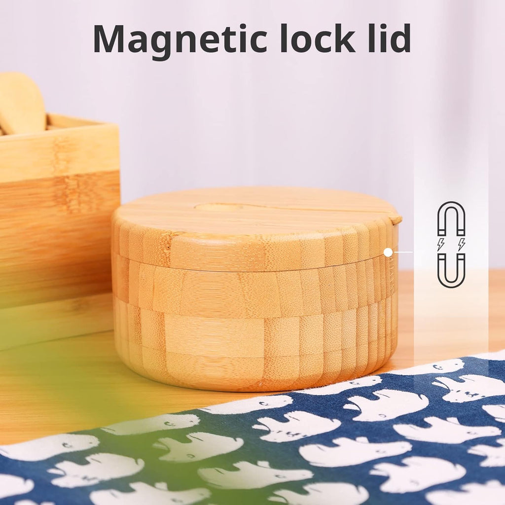 - Frascos de armazenamento funcionais: recipientes de temperos de bambu extra grandes para armazenar sal, pimentão, especiarias, ervas ou temperos. Mantenha este recipiente de sal de bambu extremamente funcional à mão na bancada ou na mesa da cozinha.