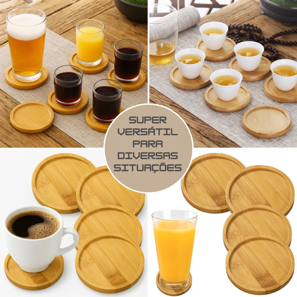 Kit 4 Porta Copos de Bambu Redondo 10 cm