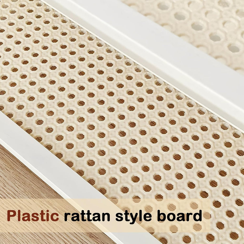 - Design elegante inspirado em tecido: feito de ABS durável com um acabamento texturizado semelhante a rattan, esta prateleira de balcão combina charme rústico com praticidade moderna. Sua estética quente e orgânica eleva a cozinha, café ou chá sem esforço