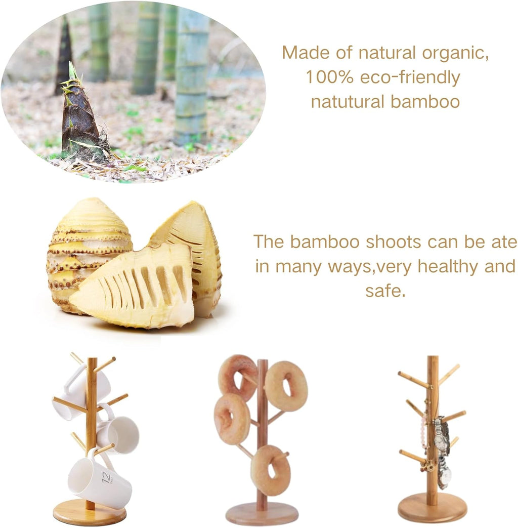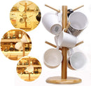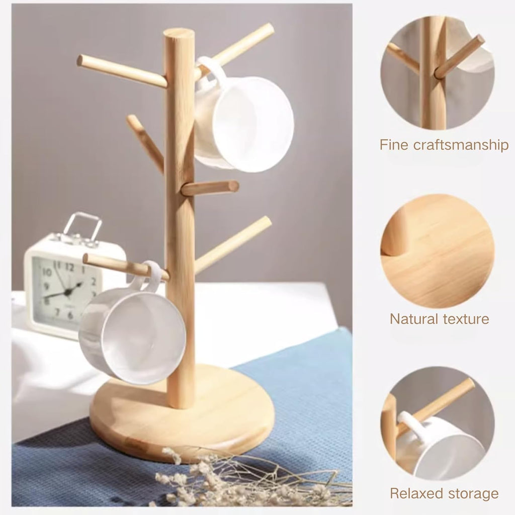 Suporte de caneca, suporte de xícara de café, árvore de caneca de bambu para balcão, secadora de canecas de café com 6 ganchos