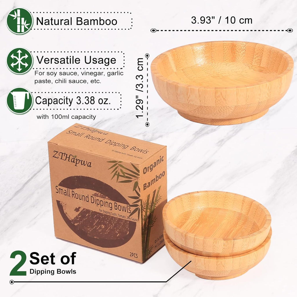 Conjunto de 2 tigelas de sopa para sobremesas/cereais/massas/frutas | Tigelas de servir de bambu natural para nozes/doces/lanches/pistache | Acessórios de charcutaria para